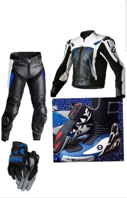 Bmw Motorrad Motorbike Racing Leather Suit Boots And Gloves Ce
